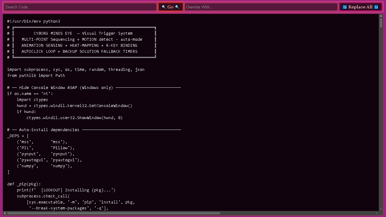 - Pattern Synthesis (0x02): A high-speed search and replace interface allows for "sub-linear complexity lookups," enabling mass overrides and structural shifts in seconds.